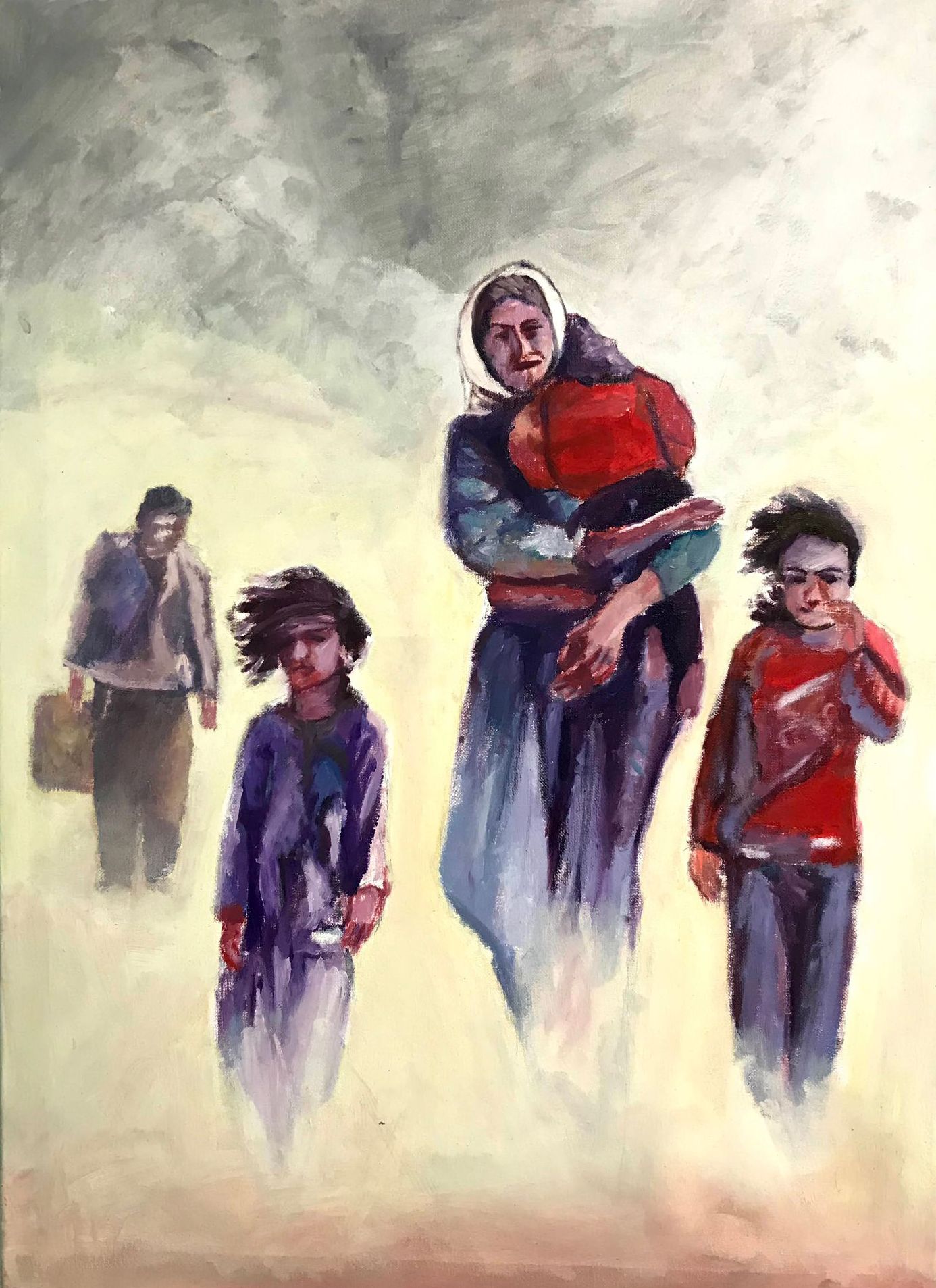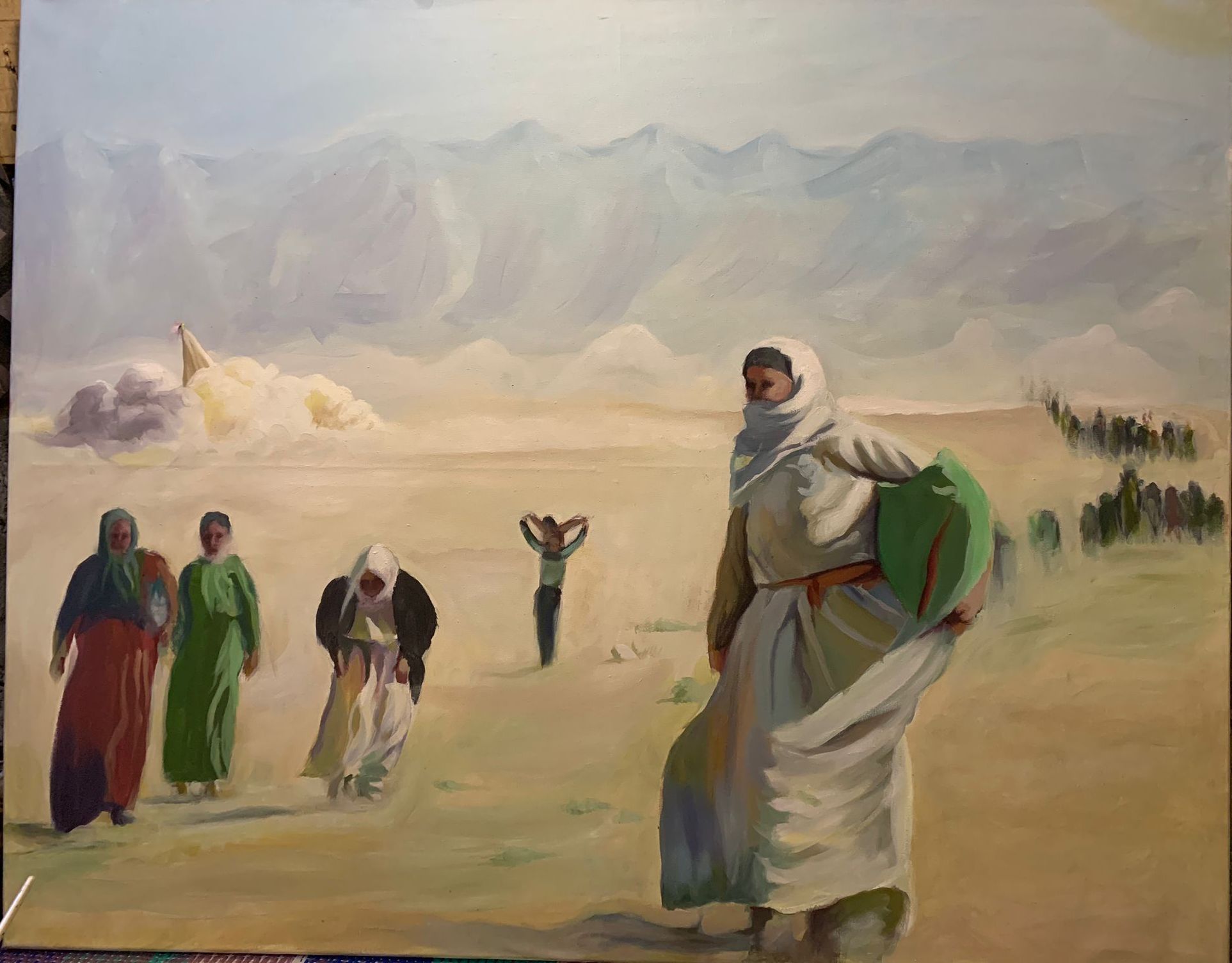 My name is Ibrahim. I am from Al-Qahtania/ Tel Al-Ezair, Sinjar. I am a graduate from the College of Fine Arts, department of Art Education. I currently live abroad. I pass the days doing daily work, and I paint occasionally. All paintings in this story map are created over the past ten years reflecting the pain, hardship and trauma we endured.