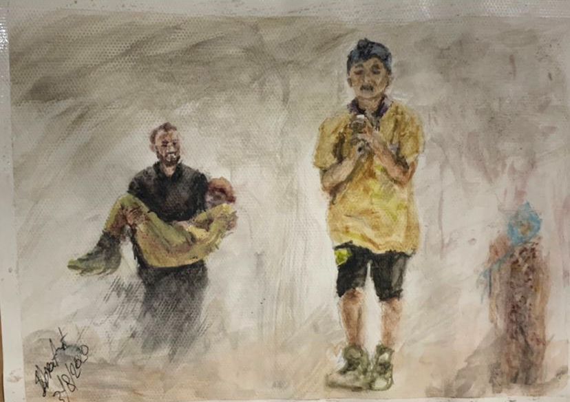I gave my shoes to my sister so that she could keep going and I could endure the pain. She said she couldn’t walk anymore because she was too nervous and was praying. I kept asking myself why would peaceful people like us have to endure any of this.